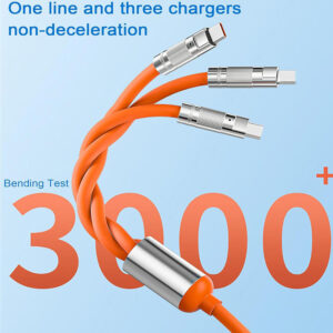 This 3-in-1 USB charging cable is designed for fast charging and data transfer, supporting up to 120W power. With Lightning, Micro USB, and Type-C compatibility, It’s an all-in-one solution for your charging needs.